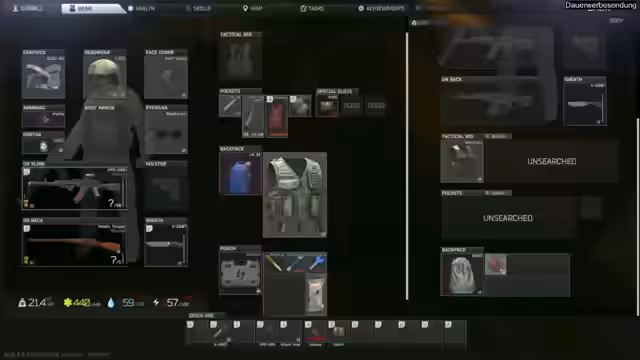 01:16:01Im Spiel Escape from Tarkov gibt es zahlreiche Aufgaben, die erledigt werden können, um Fortschritte zu machen. Spieler können ihre Soft Skills verbessern und ihren Hideout ausbauen, um maximale Boni zu erhalten. Es besteht die Möglichkeit, in der Börse zu spekulieren, Achievement-Grind zu betreiben oder Map-Knowledge zu erwerben. Das Spiel bietet eine Vielzahl von Aktivitäten, darunter das Testen von Waffen, PvP-Kämpfen und das Erforschen der Spielwelt.
