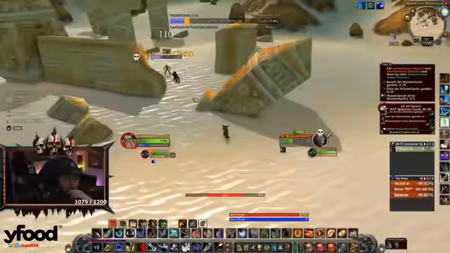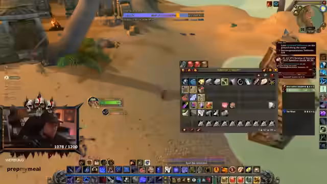 01:37:10Der Streamer bestätigt, dass er hauptsächlich auf seinem Laptop spielt und World of Warcraft sein Hauptspiel ist. Er hat konkrete Ziele für den Stream: Er möchte heute auf Level 44 kommen und steht dafür in der Wüste vor Tanaris, wo er Piraten jagt, die einfach zu farmen sind. Neben dem Grinding spricht er über die Belastung durch lange Stream-Sessions, die ihn in den letzten Wochen stark mitgenommen haben. Er muss sich mental auf den möglichen Tod des Charakters einstellen, falls dieser stirbt, ist das Hardcore-Experiment beendet. Das Datum ist gesetzt: Er muss das Projekt unbedingt bis zum 18. Uhr abschließen, da er danach ein Quiz-Event seiner Gilde besucht.