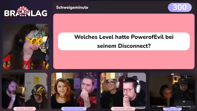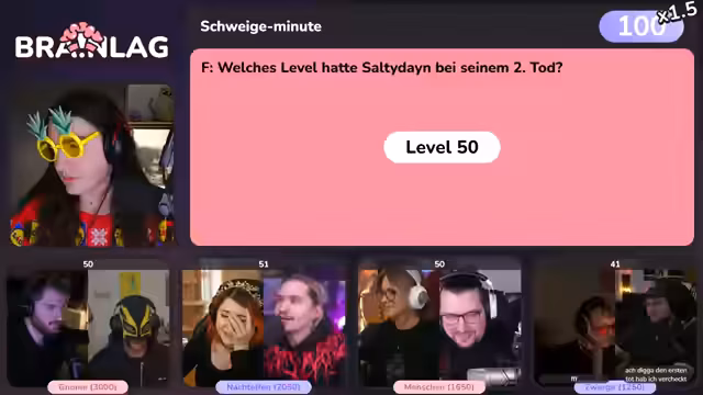 07:17:56Die Runde wechselt zu World of Warcraft Lore, speziell zu klassischen Charakteren wie N'Zoth, Yogg-Saron und Y'Shaarj. Die Teilnehmer streiten über die Zugehörigkeit einer Frage zur Classic-Lore. Es folgt ein Segment über deutsche Internet-Memes, bei dem die Teilnehmer versuchen, ein verpixeltes Bild zu identifizieren. Die Runde enthält auch eine Schweigeminute zur Erinnerung an ein virtuelles Haustier namens Luna, das im Spiel verstarb, und eine Schätzfrage zum Level von Saltydane bei seinem zweiten Tod.