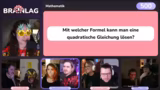 07:12:59Nach der Pause wird das Quiz mit einer Frage zur quadratischen Gleichung fortgesetzt, die auf den von Zwergen gewählten Mathe-Sektor (500 Punkte) fällt. Die Frage löst eine anhaltende und teilweise verwirrende Debatte über die richtige Antwort und die Existenz verschiedener mathematischer Formeln aus. Das Buzzer-System bleibt weiterhin unzuverlässig, was den Fortgang des Spiels erheblich erschwert. Trotzdem wird das Quiz weitergeführt, auch wenn der Ablauf durch die technischen Probleme und die mathematische Diskussion beeinträchtigt ist.