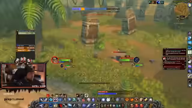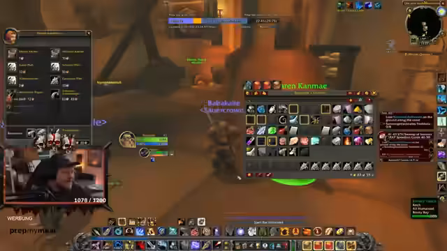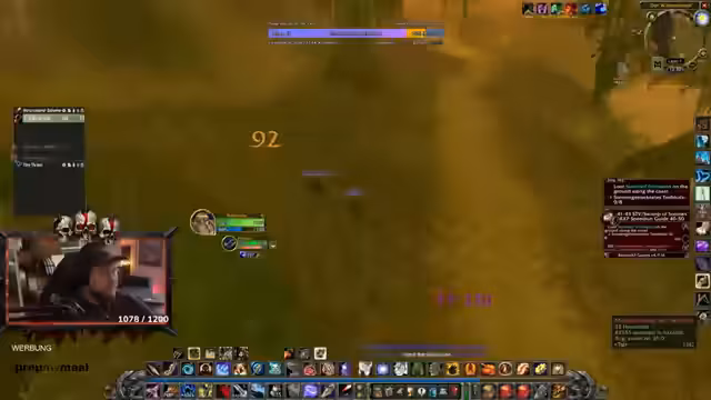 00:19:36Der Streamer befindet sich mit seinem Charakter auf Level 41 im Gebiet "Sumpf des Elends" und macht sich Gedanken über den weiteren Vorgehensweise. Er sammelt Blau-Erfahrungspunkte und will das Rested-XP nutzen, um effizienter zu leveln. Es kommt zu technischen Verwirrungen mit dem Questguide, da dieser den Streamer zunächst nicht direkt in das gewünschte Gebiet schickt. Nach dem Aktivieren einiger Makros und dem Abklicken diverser Optionen gelingt es ihm, das Gebiet zu erreichen. Die Gegend gilt als gefährlich und er muss ständig aufpassen, nicht von anderen Spielern im PvP angegriffen zu werden.