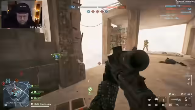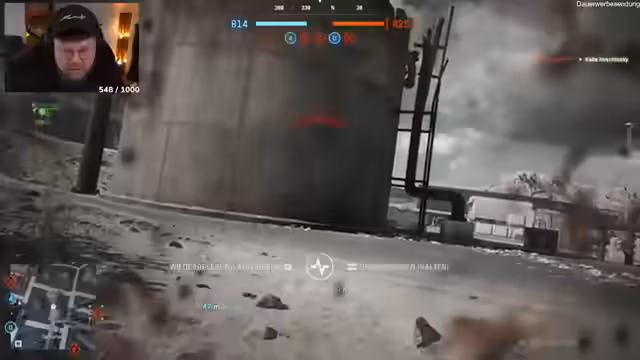 02:38:37Nach der ersten Mission der Kampagne wechselt der Streamer in den Multiplayer-Modus, um erste Eindrücke zu sammeln. Er stellt fest, dass das grundlegende Gameplay gut funktioniert, aber einige Design-Entscheidungen ihn verwirren. So fehlen beispielsweise optionale Team-Indikatoren und das Gefühl der Tiefenschärfe ist anders als in Battlefield 2042. Die Matches empfindet er als schnell und fordernd, wobei die Spieler oft sehr agil sind und sich aus geschützten Positionen bewegen.
