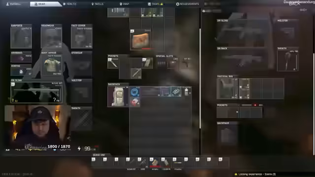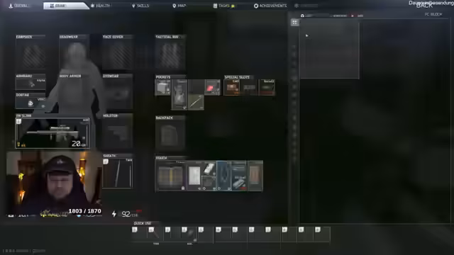 02:49:41Kalle und sein Partner erkunden das Crafting-System im Stash, modifizieren Waffen wie die RDB mit Scopes und Lasern. Sie diskutieren Quests zum Sammeln von Gegenständen wie Semiconductors und Personal Papers. Das System ermöglicht direktes Kaufen von Upgrades, kostet aber schnell Ressourcen. Kalle ist Level 3, sein Partner Level 4, und sie planen Ausrüstungsupdates wie Detox-Masken und Headsets, bemerken aber Einschränkungen bei Händler-Reputationen.
