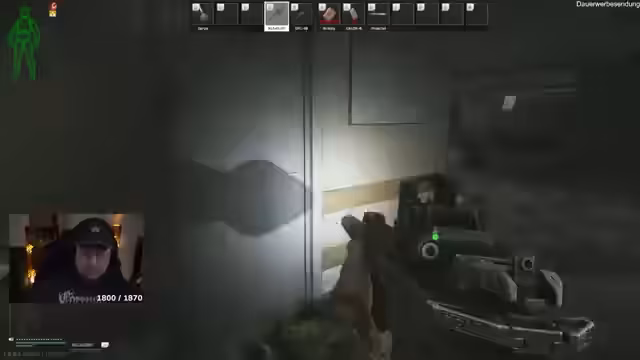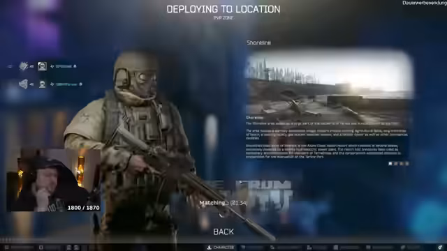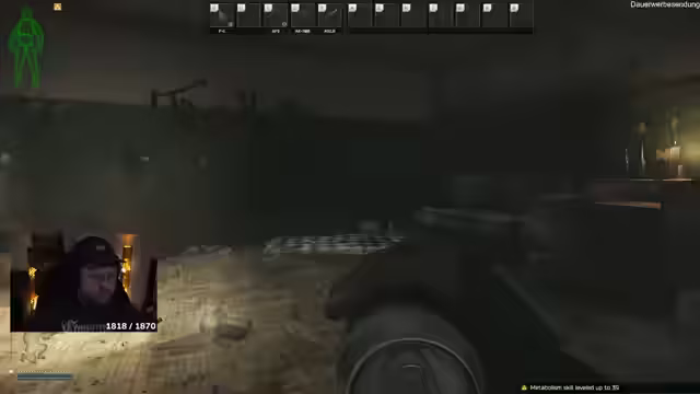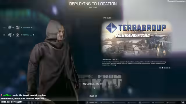 00:53:58Ein neuer Raid beginnt nach langer Wartezeit. Kalle spawnet in einer Wüstenlandschaft und lootet schnell (Toolbox, Waffen). Er erlegt einen humanoiden NPC (Ghost) und später einen PMC-Spieler. Nach intensivem Kampf mit Schussverletzungen (Bluten) und Heilung wird er schwer beschossen – der Gegner hatte wohl seine Position durch vorheriges Feuergefecht bekannt. Trotz initialer Treffer stirbt er schnell durch Gegenfeuer. Im Nachhinein vermutet er einen Fehler in der Waffenwahl (Shotgun) und diskutiert Tarkov-ähnliche Cheater-Möglichkeiten, da der Gegner sofort nach seinem Respawn wusste, wo er stand.