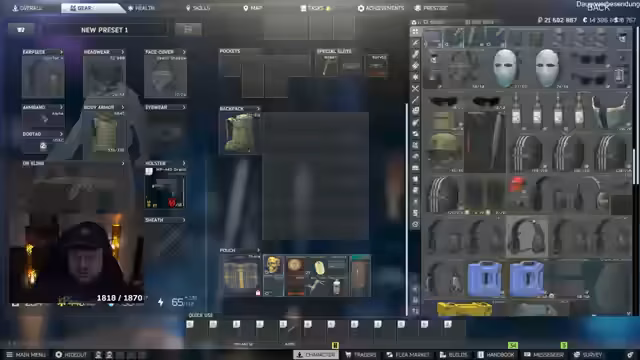 01:12:05Nach dem Raid wird das Loot-Management in der Basis thematisiert. Kalle stellt fest, dass man Munition für die neue Waffe (AK-12) zwar über 'Resupply' nachkaufen kann, aber keine zusätzlichen Magazine kaufen kann – ein kritisches Design. Er kauft eine 'Dishout Detox Mask' bei einem Händler (Beko), bemerkt aber, dass Reputationsstufen bestimmte Käufe einschränken. Auch Reparaturen sind ohne 'Workbench' unmöglich. Ein Overhaul der Grafikeinstellungen wird diskutiert, um Performance-Probleme zu mildern.