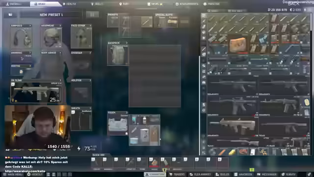 00:13:18Der Streamer gesteht seine Sucht nach Tarkov und seine Motivation, im Spiel voranzukommen. Er hat bereits Fortschritte in der Story gemacht und plant, heute weiterzuspielen. Ein weiteres Ziel ist es, den Boss Killa zu besiegen, was ihm in den letzten Tagen aufgrund von Müdigkeit nicht gelungen ist. Er versucht, sein Inventar zu organisieren und freut sich über einen gefundenen Schlüssel für Reserve, um Vertex-Items zu extrahieren. Zudem hat er die Grenadier-Quest abgeschlossen und kann nun endlich Munition bei Händlern kaufen, was seinen Stash auf 24 Millionen Rubel anwachsen lässt.