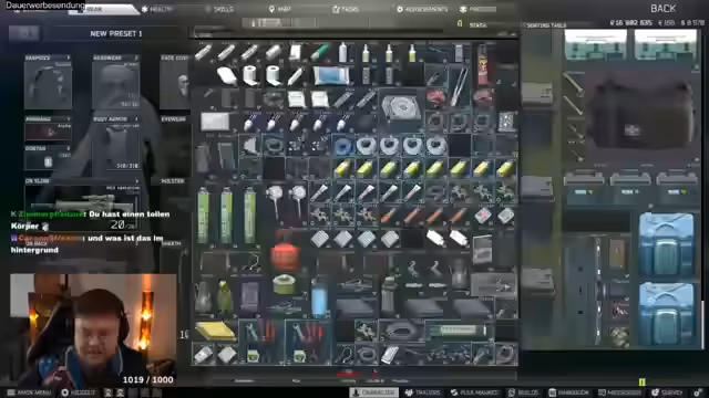00:18:43Der Streamer beginnt mit Escape from Tarkov und äußert Frustration über seine Anfangsschwierigkeiten. Er erwähnt, dass er eine Scav-Runde auf Streets machen möchte, um den Chimney Cleaner zu finden, ein wichtiges Item für den Hideout. Er spricht über seine Quests und wie er Intelligence machen kann, um XP zu erhalten. Er erwähnt auch, dass er Drive 3 spielen möchte, aber heute nicht Assassin's Creed spielen kann, weil das Embargo erst abends fällt.