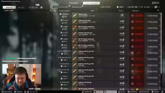 04:46:27Der Streamer berichtet von seinen Problemen im Spiel Escape from Tarkov. Er wurde von einem Spieler getötet, der einen Bug ausgenutzt hat, und findet es frustrierend, wie oft er stirbt. Er beschreibt, wie er versucht, Quests zu erfüllen und dabei ständig auf Spieler trifft, die ihn bekämpfen. Trotzdem gibt er nicht auf und wechselt zu einer anderen Karte, um seine Ziele zu erreichen. Einige seiner Mitspieler haben ihn auch getötet, was zu weiteren Frustrationen führt.