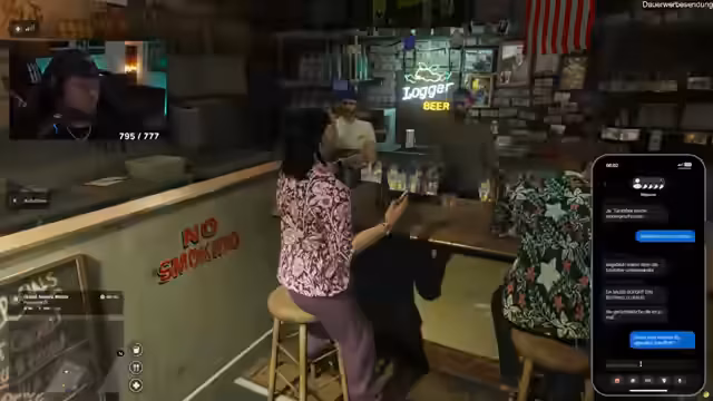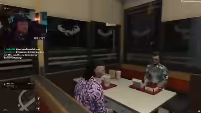 02:04:00Der Streamer bestellt Essen bei einem Burgerladen - zwei Double Burgers, einen Cheeseburger und einen Colabecher für 45 Dollar. Während des Wartens auf das Essen wird ein Foto gemacht, das aber nicht gespeichert wurde. Danach geht es zu einem Ort namens Yellowjack, wo der Streamer über das Personal spricht und einen Tanzerin namens Jessling erwähnt, die offenbar von einem Gast belästigt wurde. Es wird auch über eine mögliche Drogenrazzer gesprochen, die stattfinden könnte.