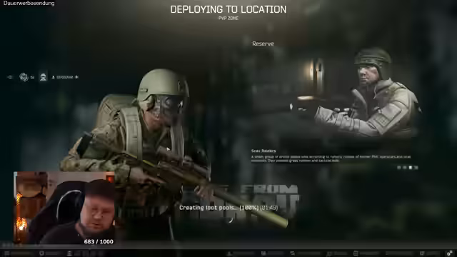05:02:17Der Streamer startet eine neue Runde auf der Karte Reserve. Nach dem Eintritt in das Spiel stellt er fest, dass die Runde bereits sehr aktiv zu sein scheint. Er hört Schüsse und Granaten, was darauf hindeutet, dass bereits Spieler Bossen bekämpfen oder kämpfen. Er beschließt, den Boss 'Glor' zu suchen und zu eliminieren, während er vorsichtig vorgeht, um unentdeckt zu bleiben. Er erwähnt, dass er einen Scav-Spieler im Auge behält, der aber anscheinend keine Bedrohung darstellt.