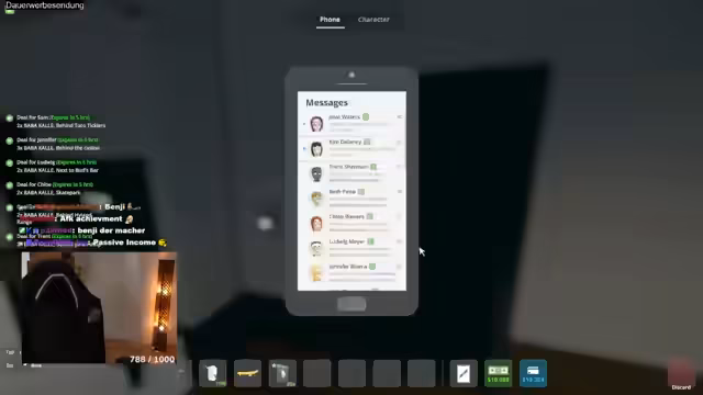 01:59:20Im Fokus des Streams steht das Management eines illegalen Drogenimperiums. Das primäre Ziel ist es, einen Bestand von 6.000 Dollar für die Geldwäsche aufrechtzuerhalten, um finanzielle Stabilität zu gewährleisten. Der Streamer muss ständig seine Ressourcen, verschiedene Drogenarten wie Weed und Crack, verwalten, neue Deals annehmen und seine Produkte verpacken, um sie an Abnehmer zu verkaufen und so den Umsatz zu maximieren und das Wachstum des Geschäfts sicherzustellen.