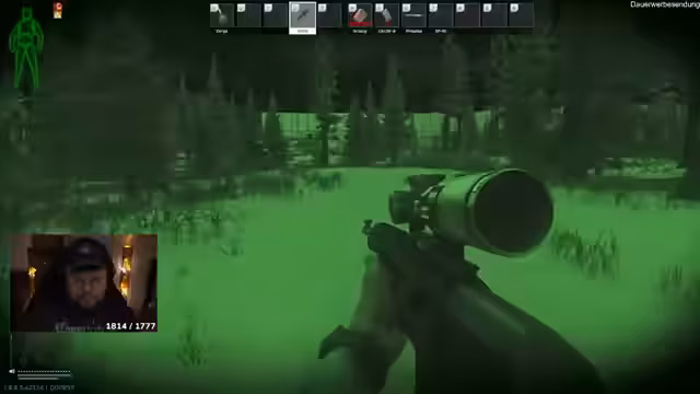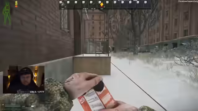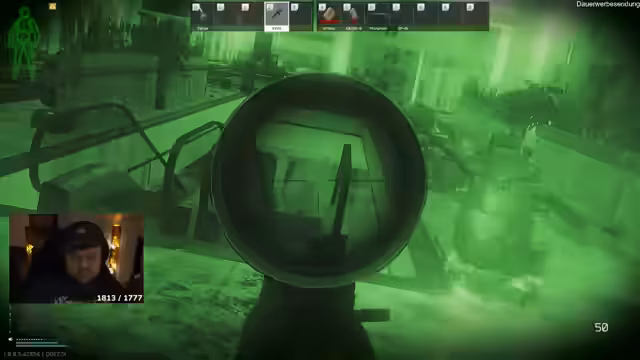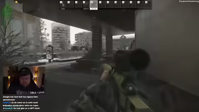 02:50:16Der Streamer spielt in einer Gruppe mit Whitey und Percy, kommuniziert über Discord und reagiert auf Gegnerbewegungen im Gelände. Sie diskutieren Taktiken wie den Einsatz von SVD-Waffen, das Plündern von Kisten und das Vermeiden von Scab-Spielern. Eine besondere Szene zeigt, wie ein Gegner nahezu unerkannt an ihnen vorbeistürmt, was für Verwirrung und humorvolle Reaktionen sorgt. Dies unterstreicht die Bedeutung von Voice-Kommunikation und spontaner Teamarbeit in Extraction-Shootern.