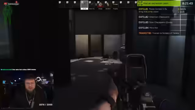 07:52:36Die Gruppe plant ihre Extraktion und wählt den Military Base Trailer Park als Ziel. Ein Spieler hat kein Geld und kann nicht extrahieren. Die Gruppe gibt Anweisungen, wie man am besten zum Extraktionspunkt gelangt. Ein Spieler hat viele Dot-Tags in seiner Hose. Die Gruppe hört Geräusche und ist unsicher, woher sie kommen. Ein Spieler wird mit einem Scaff verglichen. Die Gruppe trinkt Kaffee und Wein. Es werden Spenden im Stream angezeigt. Die Gruppe überlegt, was sie als nächstes machen soll. Es wird vorgeschlagen, auf Woods zu gehen und den Jägerbrief zu holen. Die Gruppe diskutiert über die Aktivierung von Psycho-Sniper. Es wird überlegt, das Layout technisch umzudisponieren. Ein Spieler benötigt Wasser und Cola wird angeboten. Es wird über Nudeln gesprochen, die für eine Quest benötigt werden. Ein Spieler möchte nur mit einer Sniper spielen. Die Gruppe diskutiert über das Aussehen eines Spielers mit Level 6 und guter Ausrüstung. Es wird über die Optimierung des Loadouts gesprochen, wie das Checken der Magazine und Bodyarmor. Ein Spieler wird ermahnt, nicht immer so reinzuslippen. Die Gruppe erreicht eine Grenze, wo sie keinen Spaß mehr versteht. Ein Spieler ist neidisch auf die Salami, die ein anderer isst.