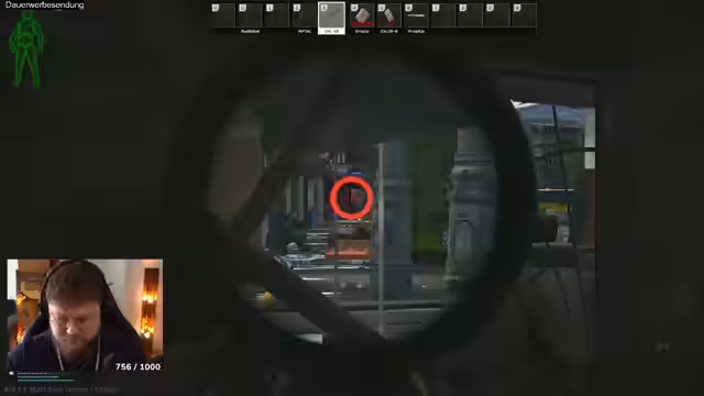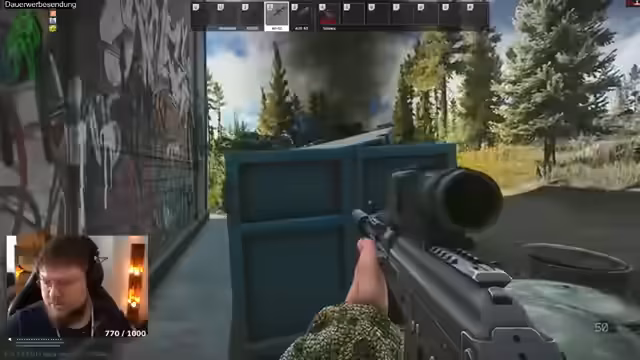 05:09:06Der Streamer schildert, dass sich seine Shooter-Erfahrung durch Tarkov verändert hat und ihm oft keinen Spaß mehr in anderen Spielen bereitet. Während eines Raids versucht er, aufmerksam Spawn-Punkte zu kontrollieren und beklagt, dass andere Spieler oft unerwartet auftauchen und sich nicht in taktischen Ecken aufhalten. Er kommentiert seine eigene Position als sehr exponiert, obwohl sie von Gegnern oft übersehen wird, was er als „asozial aber geil“ bezeichnet.
