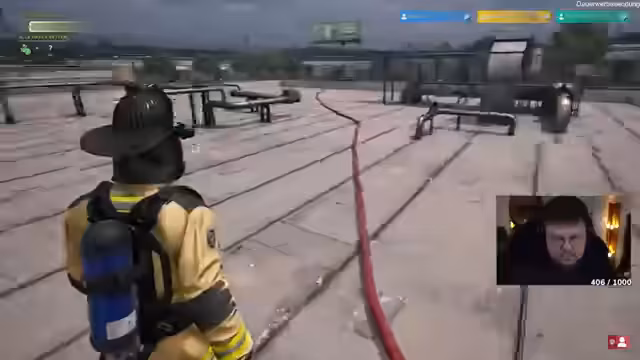 04:02:15Der nächste Einsatz führt den Streamer zu einem Brand in einem Verkaufsstand, der die Decke durchbrochen hat. Hier muss er eine Familie retten, während die Flammen aus allen Richtungen schlagen. Der Einsatz erfordert schnelles Handeln, strategisches Platzieren von Schläuchen und das Zerstören von Wänden, um an die Eingänge zu gelangen und alle Personen sicher zu bringen.