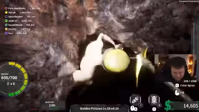 00:29:04Der Stream und seine Mitspieler beginnen mit dem Spiel 'Keep Digging', einem Mining-Simulator. Das Ziel ist, in einer Baustelle durch Buddeln Geld zu verdienen und ein Fundament für ein Zweifamilienhaus auszuheben. Es kommt zu Kooperationen, aber auch zu Missverständnissen und technical difficulties, als sich einige Teilnehmer in den verschiedenen Löchern verirren und Probleme mit der Energieverwaltung und dem Bergewerkzeug haben. Das Gameplay ist chaotisch und humorvoll geprägt von ständigen Grabaktionen, Verlusten durch Tode und der Suche nach Teleportern und Schätzen wie Diamanten und Uran.