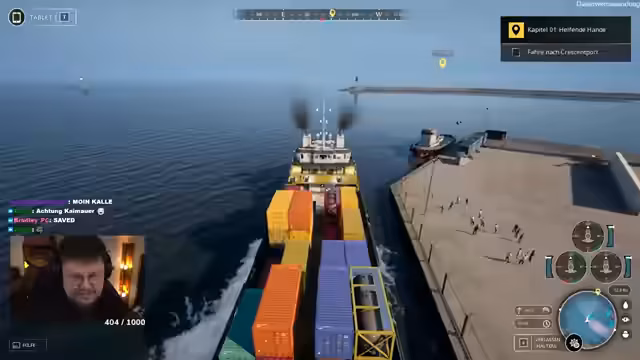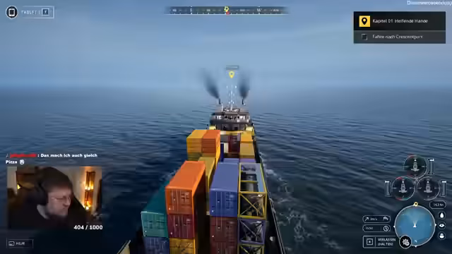 02:19:58Der Streamer wird während der Fahrt von technischen Problemen im Spiel abgelenkt. Als ein Bildschirm einfriert, bittet er im Chat um Hilfe beim 'Cache löschen'. Parallel gibt er Einblicke in seinen restlichen Tagesablauf, der weitere Stream-Sessions mit 'Party Animals' und 'Der Dümmste Fliegt' umfasst. Dies unterbricht die Immersion im Spiel und lässt die Monotonie der Schiffsfahrt noch deutlicher hervortreten.