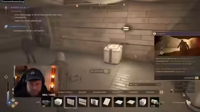 01:44:32Der Streamer beginnt mit der Konfiguration seines Respawns und entdeckt das Blutreiniger-Gebäude in der Konsole, um den Hydrationsverlust zu senken. Parallel dazu berichtet er über eine erfolgreiche Marktrunde, in der er zwei Blue Key Cards und ein Willers Wallet lootete. Diese Items sind für den Aufbau von Ausrüstung essenziell und unterstreichen die Loot-Intensität der Marktrooms, die als übermächtig beschrieben werden. Das Gameplay konzentriert sich auf das Finden und Bauen von wichtigen Ressourcen und Objekten.