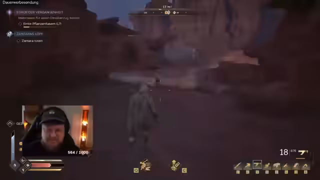 00:31:03Nach dem Start in der Spielwelt beginnt das Tutorial. Der Streamer lernt die grundlegenden Interaktionen wie das Ernten von Pflanzen, das Herstellen von Bandagen und die Nutzung des Inventars. Er erklärt, dass Ausdauer und Hydration zentrale Mechaniken sind, die im Auge behalten werden müssen, insbesondere durch die ständige Sonneneinstrahlung auf dem Wüstenplaneten Arrakis. Er demonstriert die Animationen und ersten Kampfzüge gegen einfache Gegner.