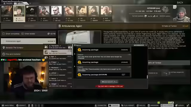 04:12:32Der Streamer sammelt Quest-Items wie Stim und L1, die für Prestige wichtig sind. Es wird über Waffen wie die SR25 und SL25 gesprochen. Ein Twitch-Crash und technische Probleme, wie die Unfähigkeit, Essen zu bestellen, werden erwähnt. Zudem wird über die Notwendigkeit von Survival-Kits und deren Wirkungsweise diskutiert, was das Gameplay beeinflusst.