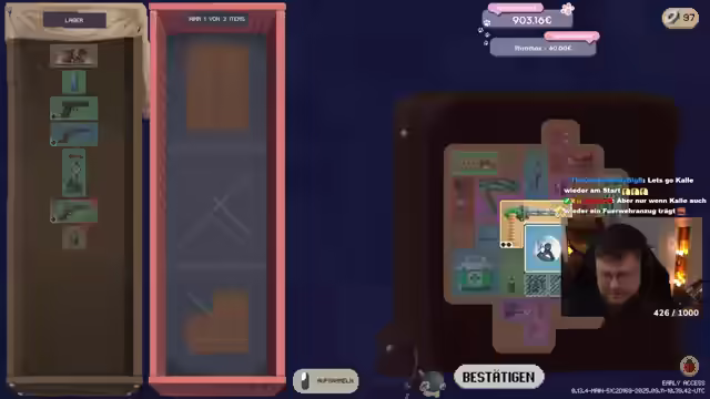 01:59:38Es wird überlegt, alles im Shop einzulösen, in der Hoffnung, das blaue Magazin zu finden. Es gibt Bedenken, ob es gelingt, die aktuelle Herausforderung zu schaffen. Der Fokus liegt auf der Suche nach dem Magazin, um den Bus zu verbessern. Es wird erwähnt, dass der Laserpointer nicht mehr im Helm ist und man ihn nicht anders befestigen kann. Der Streamer bezeichnet sich selbst als dumm, weil er nicht alle Items in den Bus einbauen kann. Es wird kurz auf ein unreleased Produkt eingegangen, das am Montag erscheinen soll. Es wird erwähnt, dass 40 Euro an das Berliner Tierheim gespendet wurden, wodurch die Spendensumme auf 903 Euro steigt. Der Streamer braucht dringend ein Magazin und fragt die Zuschauer um Hilfe.