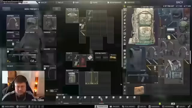 03:17:50Es wird über die Gier der Spieler nach guter Ausrüstung gesprochen. Der Streamer erwähnt, dass man sich eigentlich alles kaufen kann, bis auf Munition. Er spricht über verschiedene Quests, darunter 'Any Locations Gäste töten' und 'Light und Laser Device'. Es wird überlegt, ob eine Fountain Raid für eine Punisher Quest benötigt wird. Nach einer Runde Streets of Tarkov werden 30.000 XP erzielt. Der Streamer äußert seinen Hunger und erwähnt, dass er sich gestern eine Bolognese mit Schupfnudeln gemacht hat, von der er noch etwas hat. Er spricht über die noch fehlenden Aufgaben für Prestige, darunter Shooterbound-Kills, Psycho-Sniper, Tarkov-Shooter und The Guide. Abschließend wird überlegt, wo man am ehesten Scavs findet.