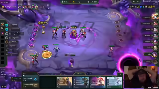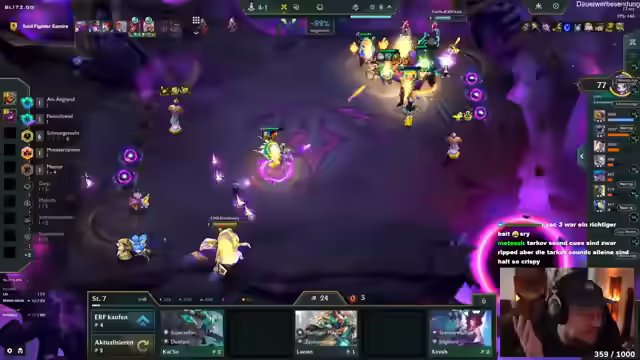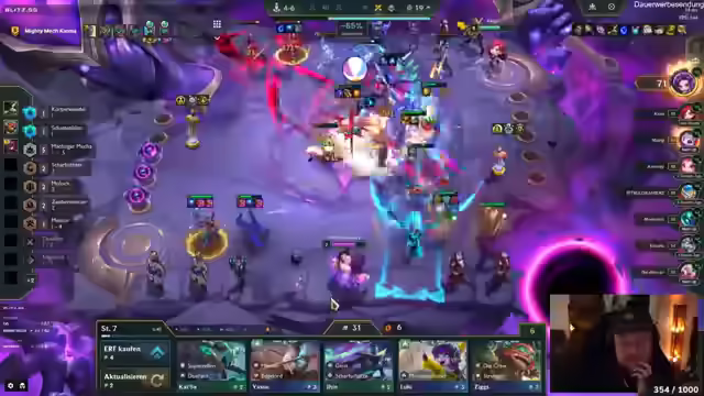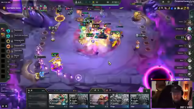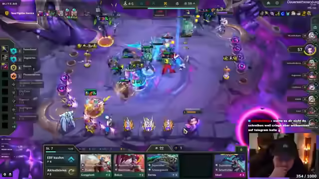 02:37:36Der Streamer spricht über seine TFT-Strategie, inklusive Item- und Champion-Auswahl. Er erwähnt, dass er durchgemacht hat, um seinen Schlafrhythmus zu verbessern, aber müde ist. Er überlegt, ob er Lulu spielen soll, entscheidet sich aber für Meiser. Er erwähnt, dass er seit drei Wochen koffeinfrei ist und macht Werbung für seinen Partner Holy, der Energy Drinks, Eistees, Milchshakes und Hydration verkauft. Er spielt weiter TFT und erklärt seine Entscheidungen. Er tauscht Power-Ups und versucht seine Poppy zu verbessern. Er überlegt, ob er Yumi drin lassen soll. Er erwähnt, dass er den Aoschins-Modus schon durchgesuchtet hat. Er erklärt, dass sein Ziel ist, Top 4 zu erreichen. Er rollt und versucht, seine Einheiten zu verbessern. Er erklärt, dass er im halben Spiel durchrasiert hat und jetzt Probleme hat. Er braucht eine Poppy und Darius. Er erklärt, dass seine Tanks keine sind. Er versucht, Poppy zu bekommen. Er verliert das Spiel und startet eine neue Runde. Er fragt nach bekannten TFT-Streamern. Er lässt frische Luft rein und wundert sich über die kalten Temperaturen. Er wählt neue Einheiten und Items. Er erklärt, dass er TFT auf Deutsch spielt, was manchmal ein Handicap ist. Er überlegt, ob er für den Krogma gamble gehen soll. Er gewinnt gegen die Golems.