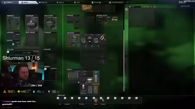 01:50:15Kalle beginnt den Stream mit der Planung für die Terminal Mission auf Shoreline. Er sammelt Ausrüstung wie Nachtsichtgerät, Platten, Munition und Granaten, stellt aber fest, dass er ein Problem mit der Munition hat. Obwohl er bereits viel mitnimmt, fürchtet er, nicht genug von der richtigen Munition zu haben, insbesondere da PP-Munition und MyRP nicht verfügbar sind. Er betont, dass das Spiel im Grunde einfach ist: man schießt. Trotzdem fühlt er sich unwohl mit seiner Ausrüstung und muss Wege finden, an mehr Munition zu kommen, um die Mission überhaupt beginnen zu können.