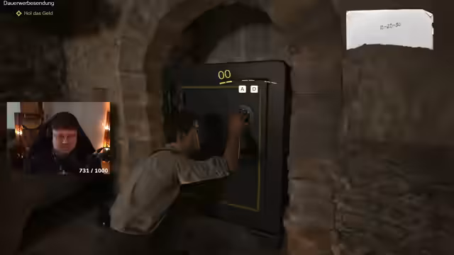 02:34:52In der Rolle eines Schuldeneintreibers besucht der Streamer verschiedene Aufträge. Auf einem Bauernhof wird ein Landwirt gezwungen, seine Schulden zu begleichen, nachdem sein Sohn als Abschreckung vor Augen geführt wurde. Später wird im Zollhof eine wertvolle Lieferung beschlagnahmt, die der Streamer mit List und List wieder an sich bringen muss. Dazu erkundet er den Hafen und einen Tresor.