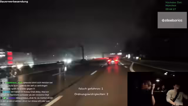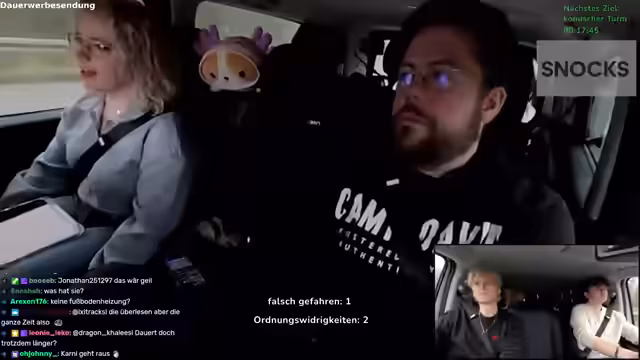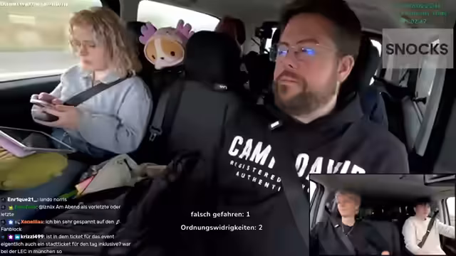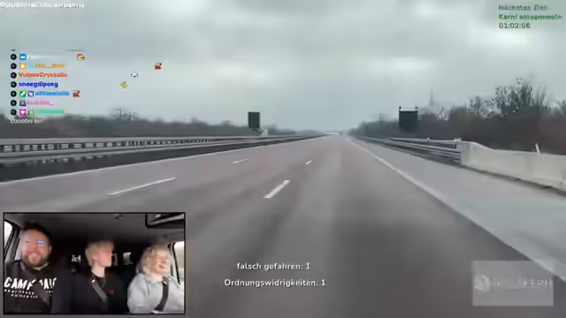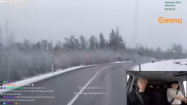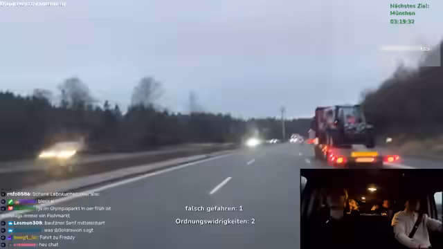 06:06:22Die Diskussion über die Herkunft des Streamers und seiner Begleiter nimmt Fahrt auf, wobei die Frage, ob er Franke oder Münchner ist, für humorvolle Verwirrung sorgt. Es wird über die geografische Einteilung Frankens gescherzt, die als 'Mittelober- und Unterfragen' bezeichnet wird. Währenddessen wird der Fahrstil eines anderen Verkehrsteilnehmers als 'exzeptionell dumm' kritisiert, da dieser ohne ersichtlichen Grund blinkt und gefährliche Manöver ausführt. Die mangelnde Beschleunigung des eigenen Fahrzeugs auf einer Steigung wird beklagt, und es wird humorvoll angemerkt, dass der Beifahrer 'Leakexpertise auf die Straße bringt', was sich auf das freihändige Fahren bezieht, welches als Ordnungswidrigkeit gewertet wird. Diese Anekdoten lockern die Stimmung auf und bieten Einblicke in die Persönlichkeiten der Beteiligten, während sie gleichzeitig die alltäglichen Herausforderungen einer Autofahrt auf humorvolle Weise beleuchten. Die wiederholten Hinweise auf 'Kathleen' und ihre vermeintlichen Fahrfehler tragen zur fortlaufenden humoristischen Dynamik bei.