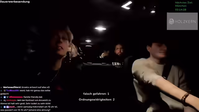 05:18:25Die Diskussion dreht sich um die Reise nach München und die damit verbundenen Erwartungen, insbesondere bezüglich des Hotels und des Fußballspiels, das im Pay-TV läuft. Es wird über frühere Touren und ungewöhnliche Ereignisse gesprochen, wobei ein Vorfall auf der Autobahn, bei dem ein Sportwagen von der Polizei abgedrängt wurde, als besonders denkwürdig hervorgehoben wird. Dieser Vorfall, der auch auf TikTok viral ging, sorgte für Erstaunen und Diskussionen über die Wahrnehmung von Streamern. Die Gruppe befindet sich aktuell in Thüringen und macht sich Gedanken über die verbleibende Fahrzeit und die Route durch Mitteldeutschland und Franken. Es wird auch über persönliche Fahrfehler und unglückliche Begegnungen im Straßenverkehr gesprochen, die zu amüsanten, aber auch nachdenklichen Anekdoten führen, wie das Anfahren eines Hundes oder das Abwürgen des Autos an einer Ampel während der Fahrprüfung.