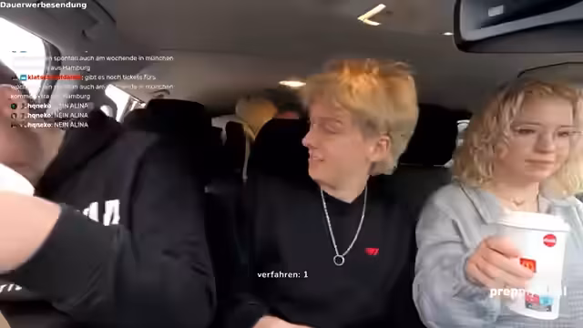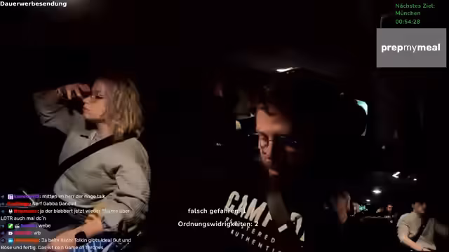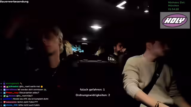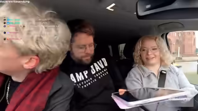 00:10:55Die Hosts müssen Tolkien abholen, der in Leipzig wartet. Die Fahrt wird als „Chaosfahrt“ beschrieben, da Tolkien, Bröki und Kathleen versuchen, sich im Auto zu arrangieren. Es gibt Schwierigkeiten mit den Mikrofonen und dem Platz, besonders als Tolkien einsteigt und es eng wird. Die Zuschauer im Chat werden darauf hingewiesen, dass die Lautstärke angepasst werden muss, da einige die Hosts als zu leise empfinden. Die Abholung von Tolkien wird humorvoll inszeniert, wobei erwähnt wird, dass er „voll gesoffen bis oben hin“ sei und mit Rucksack und Schultüte warte. Die Adresse von Tolkien wird scherzhaft als „geleakt“ bezeichnet. Im Auto wird über die Enge und die Anordnung der Sitze diskutiert, wobei der Streamer betont, dass das Kamerabild wichtiger sei als sein eigener Komfort. Es wird auch erwähnt, dass sie auf dem Weg nach Leipzig sind und dort in etwa drei Stunden ankommen sollten. Die Fahrt ist geprägt von lockeren Gesprächen, Witzen und der Herausforderung, die Technik im fahrenden Auto zu handhaben.
