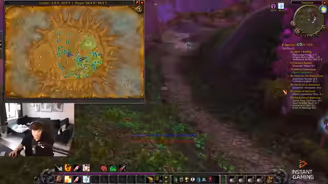 01:58:28Die Spieler erkunden gemeinsam eine Höhle im Nachtelfengebiet, kämpfen gegen Elite-Mobs und sind mit der Orientierungslosigkeit in der komplexen Umgebung konfrontiert. Sie besprechen ihre aktuellen Questziele, darunter 'Crown of the Earth' und das Sammeln von Gegenständen für ihre Priester-Klassenquest. Währenddessen diskutieren sie die Verteilung der Berufe wie Ingenieurskunst und Bergbau, um Ressourcen effizient zu nutzen und gegenseitig zu unterstützen. Die Dynamik zwischen den Spielern zeigt sich durch häufiges Verlaufen und die Notwendigkeit, Questdetails abzugleichen.