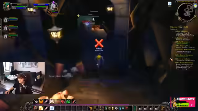 06:25:47Jasmin kämpft mit einer komplexen Schurken-Quest, bei der sie im Stealth-Modus einen Mob beklauen muss. Die Quest erweist sich als gefährlich, da bei einem Fehler mehrere Level-12-Mobs spawnen könnten. Mit Unterstützung der Gruppe gelingt es ihr schließlich durch präzise Koordination: Karni sichert sie mit einem Schild und Heilungen, während Jasmin den Mob erfolgreich beklaut. Die Mechanik wird analysiert, wobei klar wird, dass das Lesen der Questbeschreibung entscheidend war.