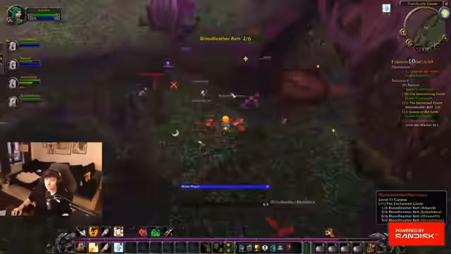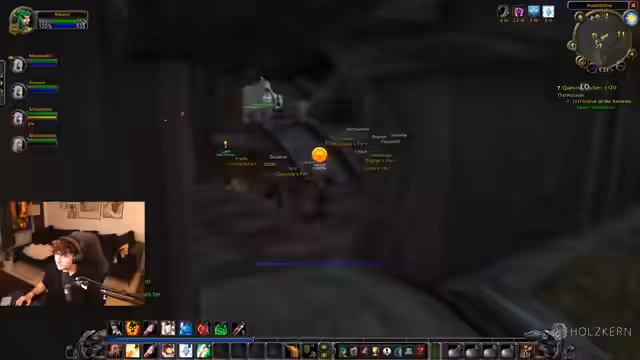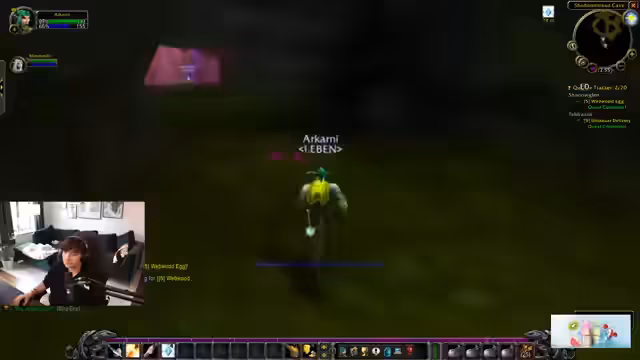 05:40:12Die Spieler tauschen Ressourcen wie Leinenstoff und Wolle aus, um handwerkliche Berufe weiterzuentwickeln. Verzauberungen werden auf Rüstungsteile angewandt, um Gesundheit und Ausdauer zu steigern. Nebenbei werden Questgegenstände wie Spinnenbeine für Alchemie gesammelt. Die Dynamik in der Gruppe zeigt sich durch scherzhafte Kommentare über Sucht nach Stoff-Ressourcen und Koordination bei der Questabgabe in Darnassus.