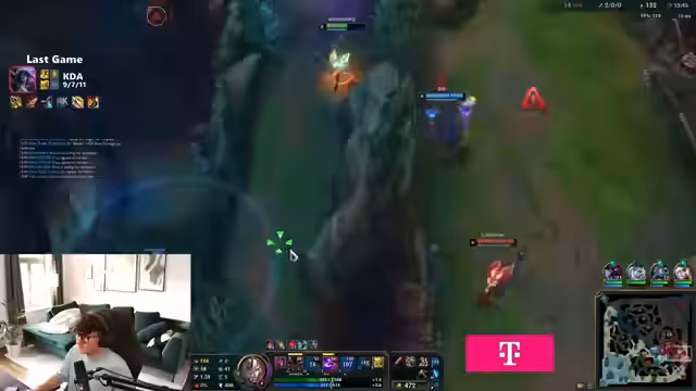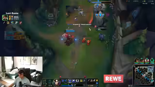 00:13:10Der Streamer bedauert, nicht an 'TP in der Lane' gedacht zu haben, da dies sehr effektiv gewesen wäre. Er hat die Nachricht über den Wechsel von Jendax und Kidui zu Eintracht Frankfurt mitbekommen und findet es gut, dass sie der deutschen Szene erhalten bleiben. Die aktuelle Lane-Situation ist schwierig, da er kaum Möglichkeiten zum Recall hat. Er bemerkt, dass das Projekt mit deutschen Spielern letztes Jahr nicht funktioniert hat und es schade ist, dass es beendet wurde, aber er freut sich, dass die deutsche Szene trotzdem in dieser Form erhalten bleibt. Er schaltet die Ingame-Musik aus, da sie störend ist. Die Lane ist extrem schwierig, und das Ziel ist es, zu skalieren und nicht zu sterben.