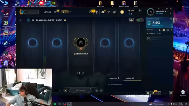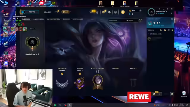 00:02:48Der Streamer plant, heute im ADC-Projekt Gold zu erreichen, obwohl er sich aktuell in einer 2-Game-Losing-Streak befindet. Er schätzt seine aktuelle ADC-Elo auf Platin ein und betont die Notwendigkeit, warm zu werden. Ein anstehendes Krokobos-Turnier wird jedoch den Fokus vom reinen ADC-Flow ablenken. Der Streamer muss zudem ein Instagram-Gewinnspiel auflösen. Die Wartezeiten für Spiele in Platin sind ungewöhnlich lang. Er hofft, dass das Wochenende ohne ihn gut überstanden wurde und freut sich auf den Stream, besonders nach den technischen Problemen beim letzten Stream in München. Er ist auf der Suche nach Gold- und Platin-Spielern, um die Wartezeiten zu verkürzen.