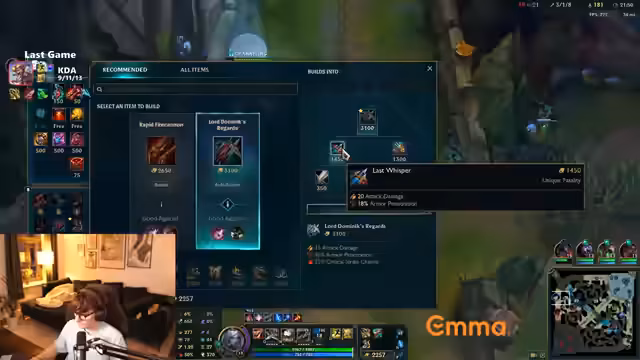 02:46:39Die Diskussion über den Item-Build für Kai'Sa geht weiter, wobei der Streamer die Vor- und Nachteile von On-Hit- und AP-Builds abwägt. Er argumentiert, dass ein AP-Build sinnvoll sein könnte, wenn man ohnehin nicht viele Auto-Attacks setzen kann. Die Flexibilität von Kraken und Rageblade wird betont, da sie zu allen drei Evolves beitragen und spätere Builds offenlassen. Der Streamer konfrontiert den Chat bezüglich der Elo-Diskussion und fordert jeden, der seine Game-Knowledge in Frage stellt, auf, seine eigene Elo preiszugeben, wobei er alles unter Diamond 4 als „peinlich“ bezeichnet. Er verteidigt seine Item-Wahl und betont, dass Elo und Game Knowledge nicht immer direkt miteinander verbunden sind, es sei denn, man ist ein Coach, der sein ganzes Leben dem Spiel widmet.