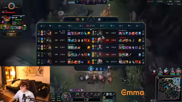 06:01:12Der Streamer reflektiert über seine Schwierigkeiten, Spiele mit Smolder zu carrien, trotz des großen Spaßes, den ihm der Champion bereitet. Er erkennt, dass er Smolder im Early Game als „fucking Caster-Minion“ betrachten muss und seine aggressive Spielweise, die zu einer 1.6er KDA führte, kontraproduktiv war. Die Frustration wird deutlich, als das Team trotz eines Elder Dragons und eines fast 400 Stacks Smolder ein Game verliert, weil die Frontline (Poppy und Xin) die falschen Ziele jagt, anstatt den Teamfight um die Carries (Aurelion Sol, Smolder, Karma) zu spielen. Die mangelnde Unterstützung und das fehlende Verständnis des Teams für die Rolle eines ADCs in der Elo werden als Hauptgründe für die Niederlage identifiziert, was ihn dazu bringt, über die Sinnhaftigkeit von Smolder in dieser Spielumgebung nachzudenken.