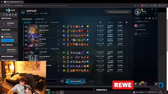 03:43:56Das Spiel neigt sich dem Ende zu, und der Streamer befürchtet eine Niederlage, da das Team „komplett outclassed“ ist und die Toplane ebenfalls schlecht abschneidet. Er sieht sich selbst als den einzigen, der noch versucht, das Spiel zu spielen. Die Diskussion über den Build und die Rolle des ADC wird fortgesetzt, wobei der Streamer betont, dass er ADC spielt, um Spaß zu haben und eine neue Rolle zu lernen, nicht um ein Elo-Ziel zu erreichen. Das Projekt ist kein „Unranked-to-Master“-Projekt. Trotz der Niederlage wird die Stärke des eigenen Champions, insbesondere im 1-gegen-1-Kampf, erkannt. Die Überlegung, als Full-Duellist zu spielen, wird angestellt. Der Streamer bekräftigt seine Liebe zur Support-Rolle und den Support-Champions, auch wenn er gerade ADC spielt. Die Schwierigkeiten, ein Team für ein Turnier zu finden und die Rolle von Pro-Playern im Turnier werden ebenfalls kurz angesprochen. Die Niederlage wird als Ergebnis der mangelnden Koordination und der schlechten Leistung des Supports gesehen, der „gespielt hat wie Arsch und Rüben“.