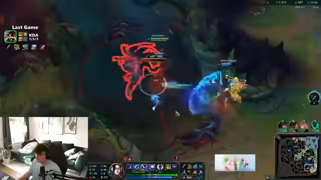 03:37:37Im weiteren Verlauf des Spiels wird die Stärke des eigenen Builds und die Fähigkeit, viel Burst-Schaden zu verursachen, hervorgehoben. Der Streamer hadert mit den „Limitations of Mind“ und der Entscheidung, wann man aggressiv spielen sollte. Die Anwesenheit von Seraphine und Sett auf der Botlane erschwert aggressive Plays. Die Notwendigkeit, den Flash für Seraphines Ult aufzuheben, wird erkannt. Die Frustration über den Leblanc-Support wächst, da dieser passiv bleibt und keine Initiierungen vornimmt oder Ignite nutzt, obwohl er fast so viel Schaden wie der Streamer selbst verursacht. Die Laning-Phase wird als „hart, aber nicht so hart“ beschrieben, wenn der Support kooperativer wäre. Der Streamer wartet seit 16 Minuten auf das „Tempo“, das der Support vorgeben soll, was die Passivität des Supports weiter unterstreicht. Die mentalen Herausforderungen des Spiels werden deutlich, da das Team nicht harmonisch zusammenarbeitet.