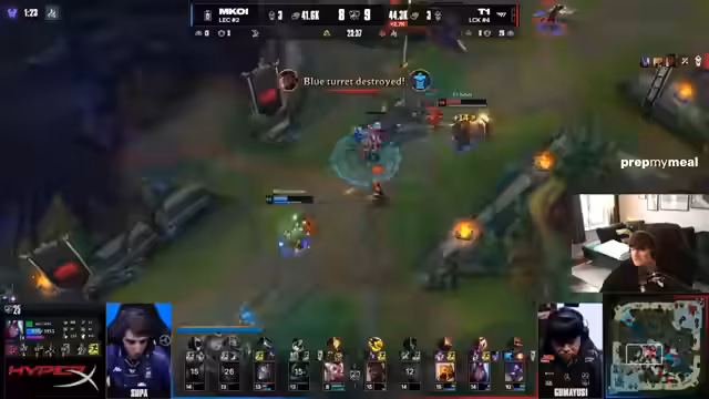 05:39:10T1 baut seinen Druck konsequent aus und kontrolliert das Spielgeschehen, indem sie Objekte sammeln und Turme zerstören. Der Streamer erkennt jedoch eine Aufholbewegung von Movistar Koi in der Mitte der Partie. Trotzdem kann Movistar Koi das Momentum nicht halten, und T1 gewinnt das Spiel mit einer klaren Performance. Der Streamer lobt das Engagement des europäischen Teams, sieht aber die Niederlage als unausweichlich an.
