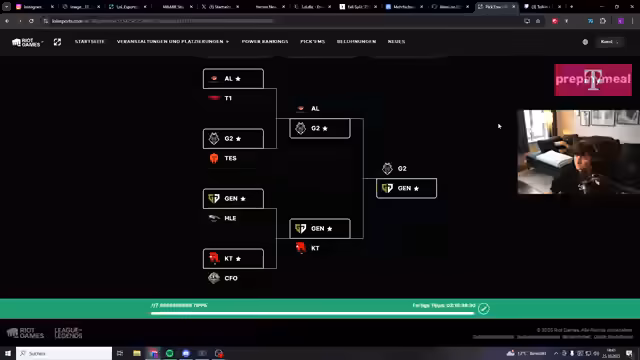 00:00:31Der Stream beginnt in den frühen Morgenstunden. Der Streamer begrüßt die Zuschauer und erwähnt, dass es sehr früh für einen Stream ist. Nach einer kurzen technischen Anpassung aufgrund von Vorgaben der Co-Streamer, die die Kamerapositionierung betreffen, gibt er einen kurzen Überblick über die teilnehmenden Teams für den Tag. Er betont die Wichtigkeit des heutigen Tages, der der letzte der Play-ins, speziell der Swiss-Stage, ist und somit ein 'do or die' Tag für alle Teams darstellt. Der Streamer äußert seine große Vorfreude auf die anstehenden Matches, da er keine als uninteressant empfindet.