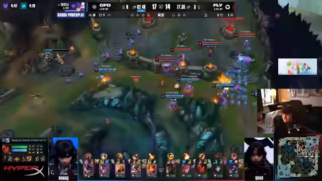 00:23:12Nach einer längeren Unterbrechung und technischen Problemen geht das Spiel weiter. Der Streamer analysiert das ingame-Geschehen, insbesondere die Positionierung und die Engagements der Teams. Er erwähnt den unglücklichen Lane-Swap von CFO, der sich negativ auf ihre Lage auswirkt. Obwohl FlyQuest einen scheinbaren Vorteil hat, führt CFO das Spiel spätspielerisch dank ihres starken Azir und Corki zum Sieg. Der Streamer kommentiert die individuellen Leistungen und hebt besonders Inspired von FlyQuest hervor, der ohne teamliche Unterstützung stark spielte.