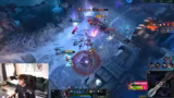 02:46:33Es wird eine explizite Challenge für den Mitspieler Adrian inszeniert, ein Spiel mit über 20.000 Schaden abzuschließen. Der Streamer agiert als Organisator und fordert das Team auf, Adrian DPS zu lassen und nicht zu 'hitten'. Die Diskussion dreht sich um spezifische Item-Entscheidungen, wie zum Beispiel den Kauf von Frozen Heart für Fähigkeiten-Beschleunigung und Lord Dominik's Regards als nächstes Ziel. Der Streamer analysiert auch Builds anderer Mitspieler und hinterfragt die Logik hinter bestimmten Item-Wahlen, was auf eine tiefgehende Taktik-Spekulation hindeutet.