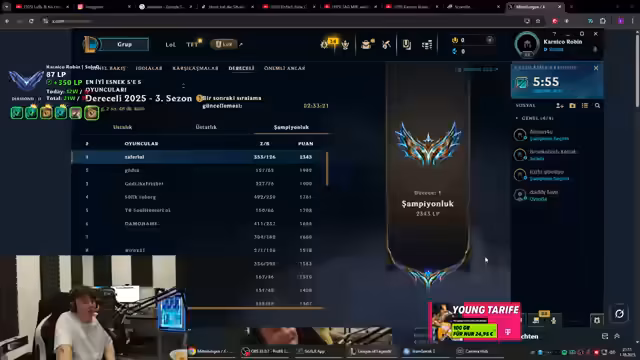 09:15:50Die aktuelle Elo-Situation und die Rangstufen auf dem türkischen Server werden detailliert besprochen. Es geht um die Unterschiede zwischen SoloQ und FlexQ, wobei FlexQ mit 2400 LP als extrem hoch angesehen wird. Der Rang 1 der SoloQ liegt bei 1900 LP. Die Gruppe stellt fest, dass sie aktuell Master-Games spielt und sich dem Grandmaster-Bereich nähert, was die Schwierigkeit der Spiele erhöht.