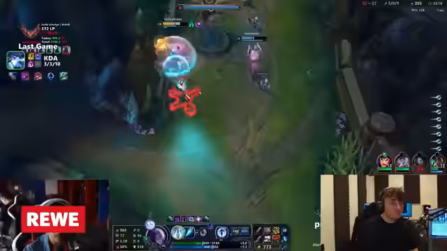 07:47:46In einem besonders dramatischen Spiel gelingt dem Streamer als Bard ein spektakulärer Move, indem er die Ultimate des gegnerischen Malphite mit seiner eigenen Ultimate canceled und damit einen Teamkill ermöglicht. Das Team nutzt diesen Vorteil, um anschließend erfolgreich ein Objectiv zu kontrollieren. Das Spiel endet trotz anfänglicher Schwierigkeiten und eines gegnerischen Carries mit einem Sieg für das Team des Streamers.