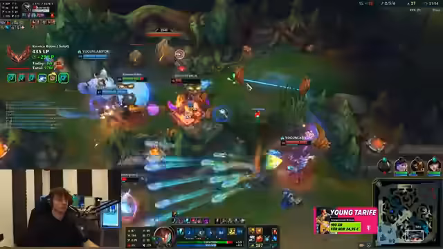 00:16:40Midway through the stream, the discussion shifts to collaborations and server travel. The streamer talks about playing with Freddy, who is described as a demon in the game, maintaining Challenger rank across roles. Plans are mentioned for a server trip to Taiwan and staying in Turkey until the 10th, with Freddy being highlighted for his exceptional skill. There's also talk of a potential duo-queue challenge with Bröki, but concerns arise about server limitations for high-tier play. The streamer emphasizes the importance of teamwork and shared goals for the grind.