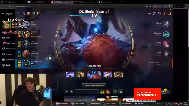 00:01:41The stream begins with intense gameplay in a support role challenge on the Turkey server. Early on, there's a mention of Bröki, who is playing against the streamer and has targeted banned Thresh, which is frustrating. The streamer discusses their counter-pick strategy and expresses annoyance at Bröki's actions, highlighting the competitive nature of the game. There are also brief references to technical issues like Spotify lagging, but the focus remains on the in-game tactics and initial matchups. The tone is aggressive, with the streamer vowing to dominate despite the challenges.