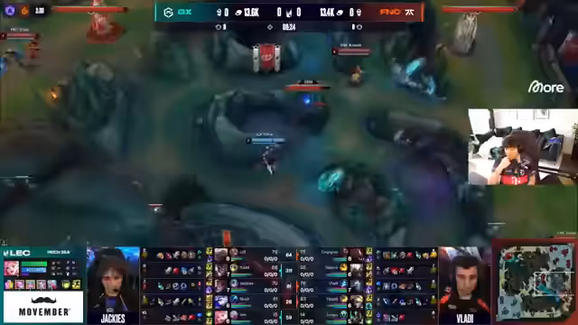 02:00:03Das erste Spiel zwischen Fnatic und GiantX läuft an. Es werden die ersten Moves, wie der Level-1-Invade von Razorog auf Isma, im Detail kommentiert. Der Fokus liegt auf der Minimap-Analyse und der daraus resultierenden tempomäßigen Überlegenheit von GiantX. Die frühen Entscheidungen der Spieler werden als entscheidend für den Spielverlauf bewertet.